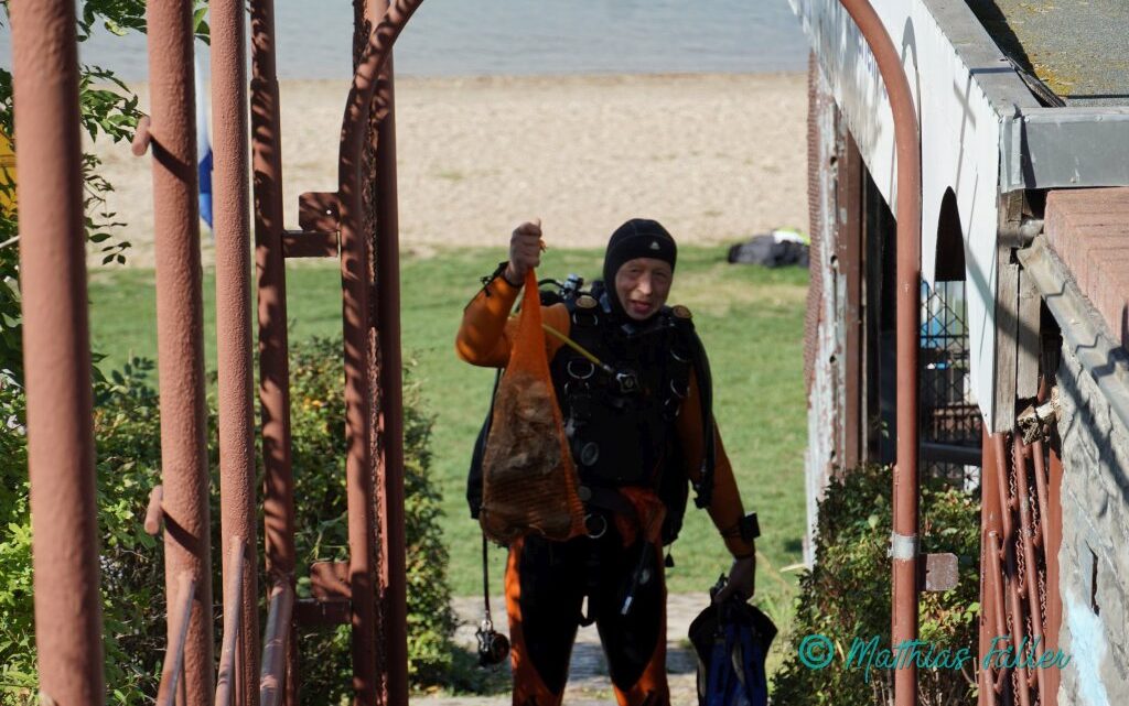 Es fanden sich viele fleißige Helfer.So konnte unter Wasser viele Flaschen und einige andere ins Wasser gefallene Sachen eingesammelt werden. Leider hätte es viele Müllsäcke und Hände mehr gebraucht um alles einsammeln zu können. So das der nächste Einsatz wieder dringend nötig sein wird.